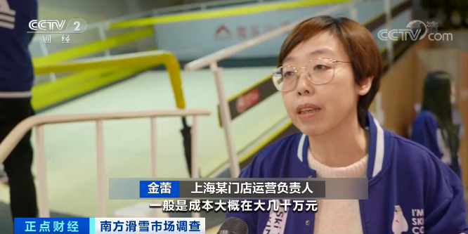 上海某门店运营负责人金蕾:一台机器的成本一般是在大几十万元,机器造雪和滑真雪最大的区别就是相对比较安全,而且比较高效。