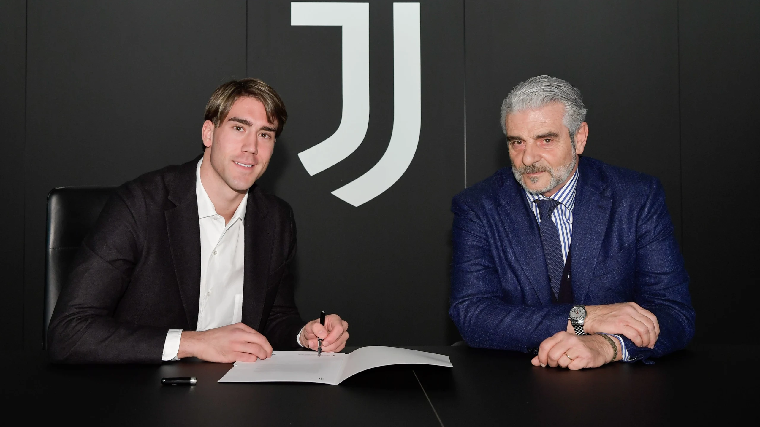 弗拉霍维奇(左)与尤文图斯签约。