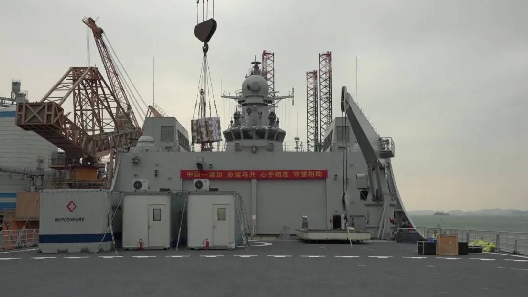 五指山舰作为编队指挥舰还配备了专业医疗卫生人员和装备,具备疫情防控和医疗救治能力。编队也将根据汤方后续请求,提供力所能及的帮助。