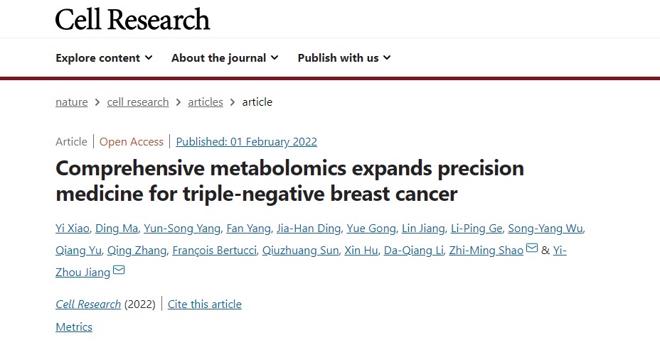 “复旦肿瘤”科学家绘制出最大三阴性乳腺癌代谢物图谱