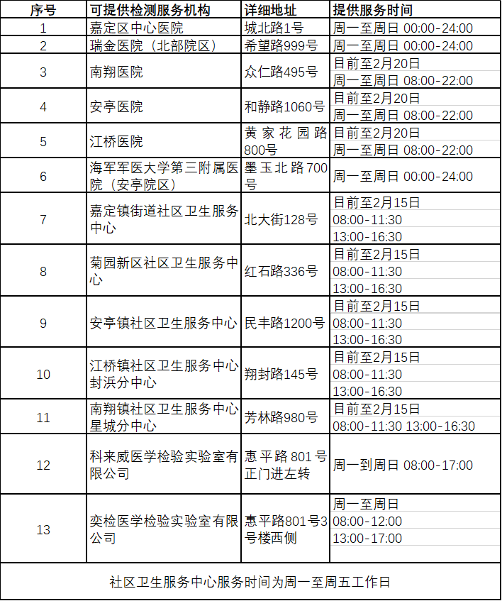 2月7日起,嘉定又一家医院推出24小时核酸检测服务