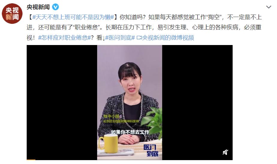 你知道吗?天天不想上班可能不是因为懒,还可能是有了“职业倦怠”。微博截图