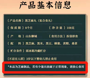 我们发现在黑芝麻丸的包装盒上,都印有温馨提示:若有少量出油属于正常现象。