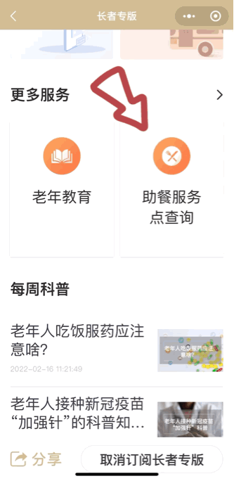 2、“助餐服务点查询”:
