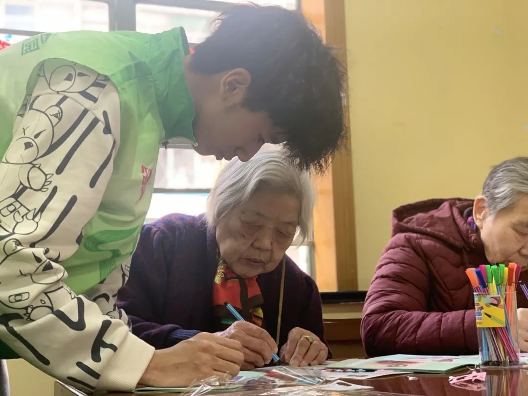 助老员黄燕告诉记者,这间日间服务中心里的老人平均年龄已超过85岁,且95%以上独居在家,子女不在身边。而大学生们的到来,就像一抹亮色。“老人们对情感陪伴有很大需求,每次有年轻人来这儿,陪他们坐坐,聊聊,大家都会很高兴。”黄燕说,“有时候他们还会催问我,孩子们下一次何时来,特别期待。”
