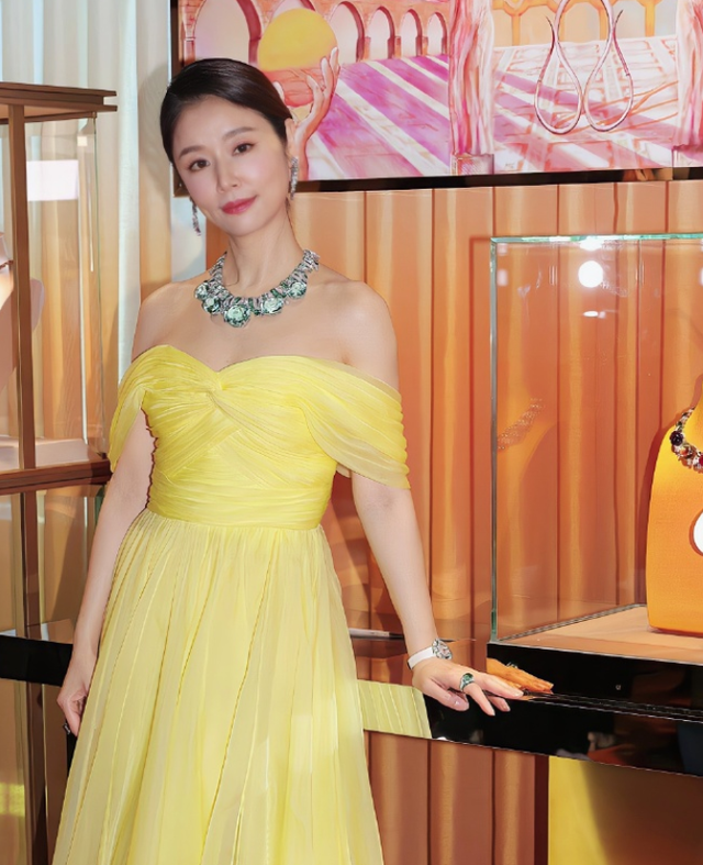 当天的活动中,林心如还换了另外一套服装。亮黄色的长裙衬得林心如的皮肤更加白皙有光泽,一字肩的设计展现出漂亮精致的锁骨,胸前的超大珠宝依旧是整套搭配的亮点所在,整个人看上去优雅又贵气。