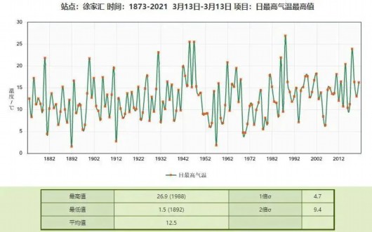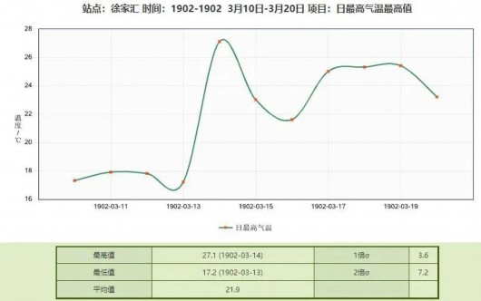 3月13日,徐家汇站最高气温27.6度,创下同日最高气温纪录,成为徐家汇站建站以来,最暖的3月13日。