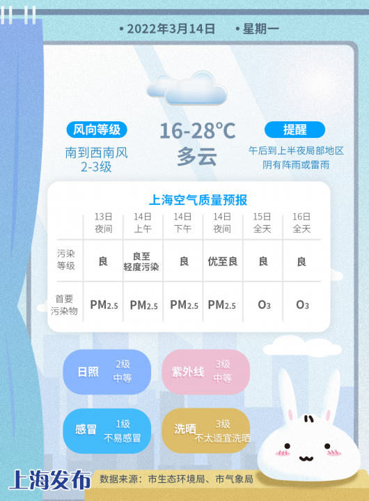 今天气温还将创新高,预计最高气温可达27~29℃,早晨气温在16℃附近。受辐射降温和海上平流共同影响,上海中心气象台2022年03月13日22时20分发布大雾黄色预警信号:预计今天上午以前全市大部地区将出现能见度小于500米的雾,局部地区能见度小于200米,大家请注意防范!