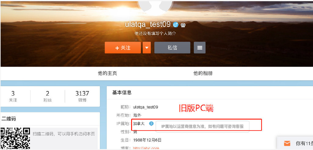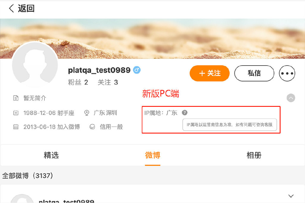 1.此功能将在“个人主页-个人资料”中展示用户最近一个月内最后一次发布博文或评论的IP归属地域。IP归属地域显示规则与评论区当前显示规则保持一致;