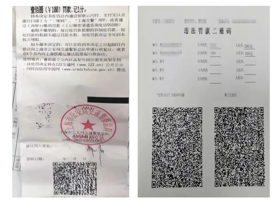 市民被执勤民警现场开具处罚决定书或在交通违法审理“窗口”处理“电子警察”后,可以扫描处罚决定书或违法罚款二维码上的“二维码”缴款,也可以通过输入处罚决定书编号缴款。