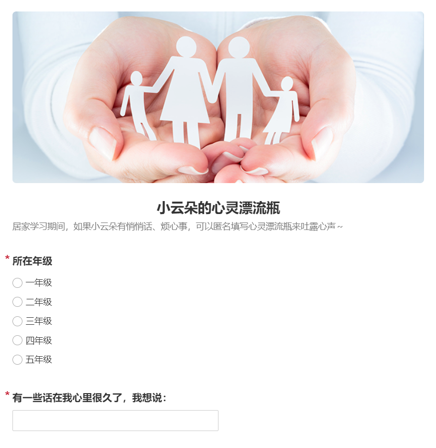 “对于性格内向、不愿与他人交流的同学,‘心理咨询室’专门设置线上“心灵漂流瓶”二维码,学生可自主扫码匿名留言,分享‘悄悄话’‘小秘密’。”赵令睿说。