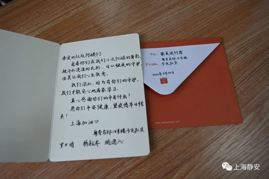 学生们表示,这几天小区封闭管理进行核酸筛查,看到志愿者们的辛勤工作,同时也在新闻里看到“大白”几十个小时回不了家,有的只能在椅子上休息,觉得他们非常辛苦,希望在表达敬意的同时,也为他们打气