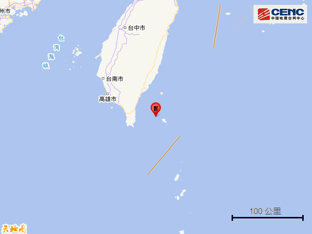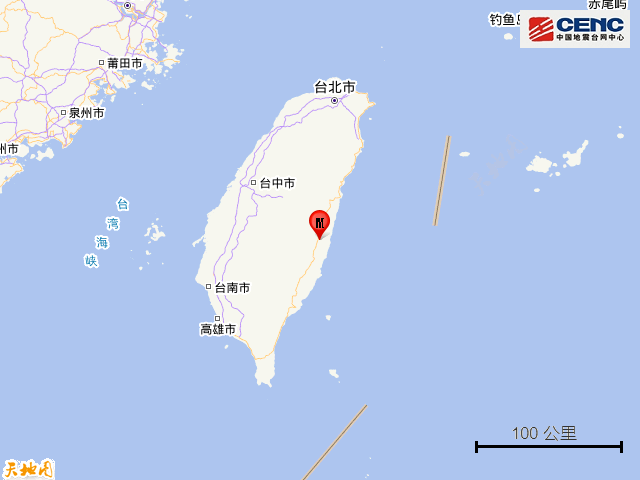 台湾台东县海域发生5.7级地震震源深度20千米