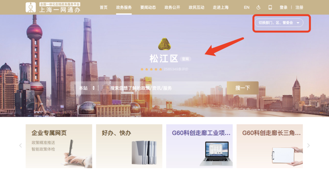 使用企业或个人账号登录“一网通办”松江区频道: