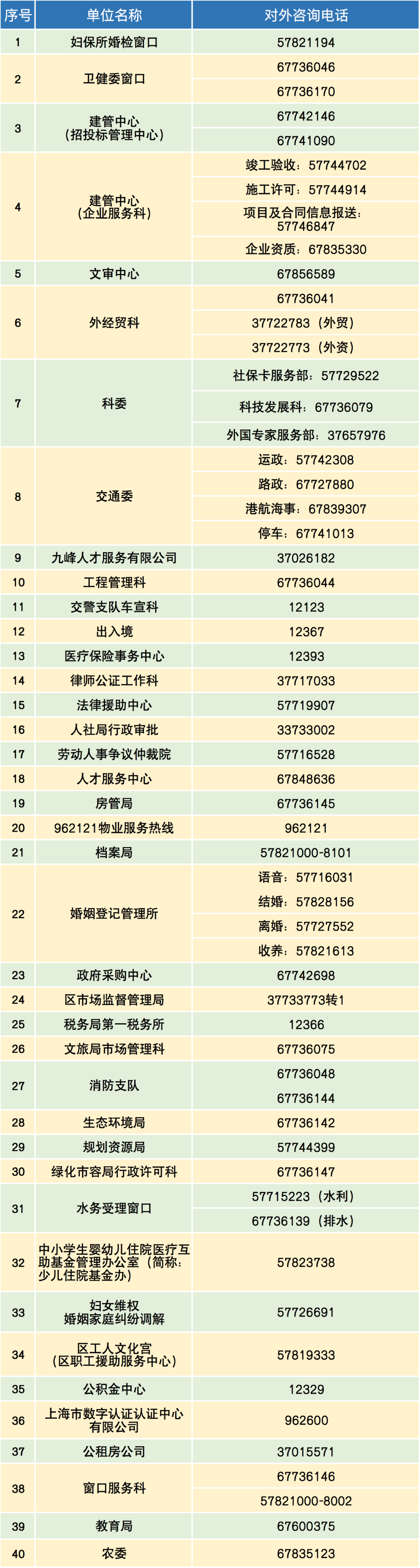 附:松江区行政服务中心入驻单位咨询电话