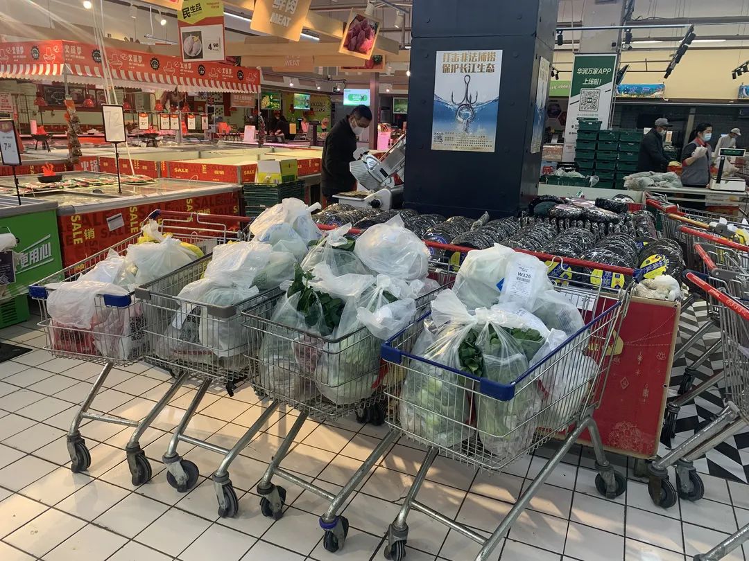 为了保障当天接单,次日送达,七宝、航华两大邮政网点派出80余名邮政投递人员参与配送。同时,华润集团上海总部紧急成立25人党员先锋队支援,火力全开。除华润万家外,七宝镇还与盒马X会员店、家乐福、永辉超市、万科BLT、紫燕百味鸡合作,多管齐下、保障民生。