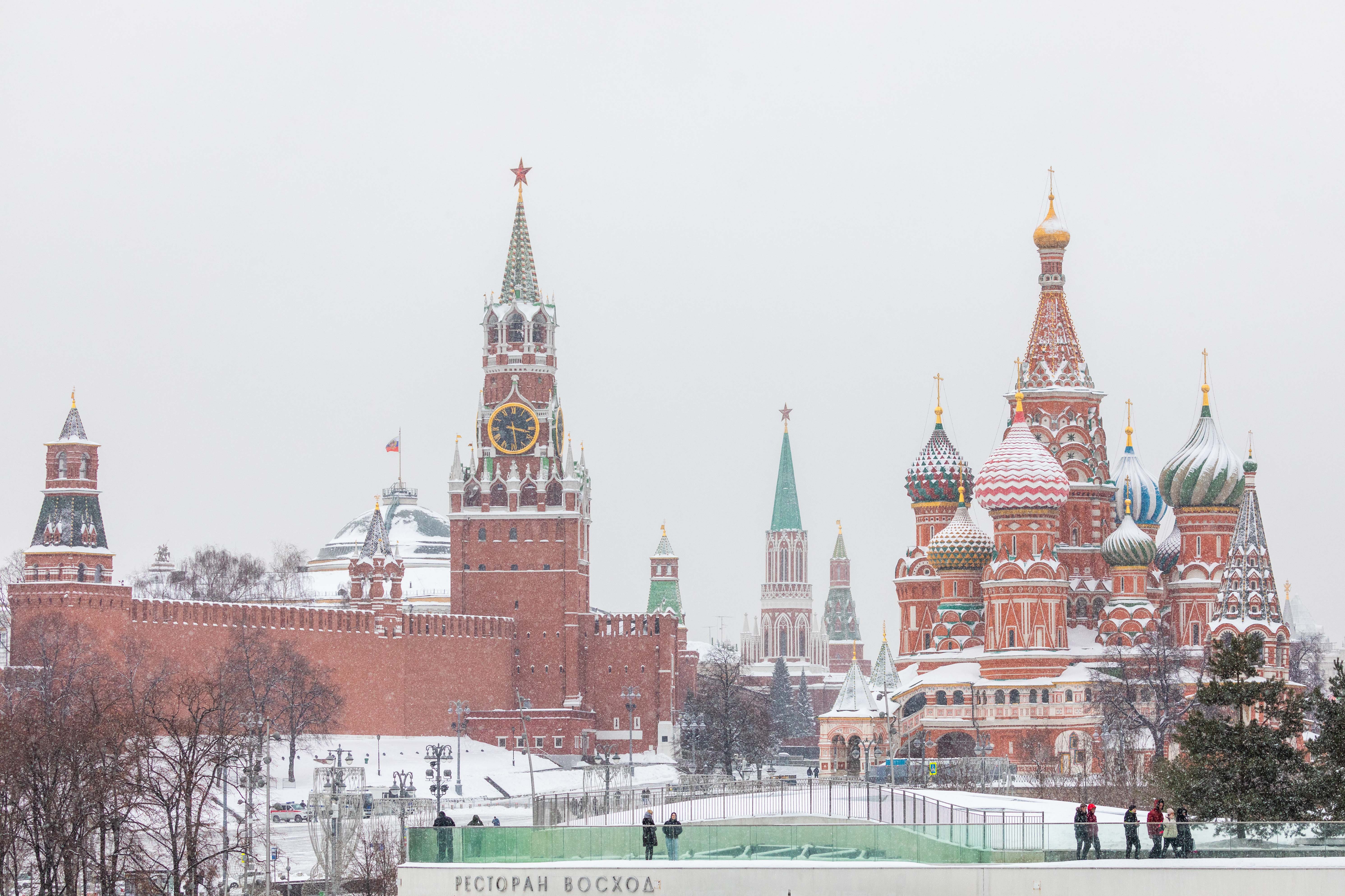 这是1月26日在俄罗斯首都莫斯科拍摄的克里姆林宫和圣瓦西里教堂。新华社记者白雪骐摄