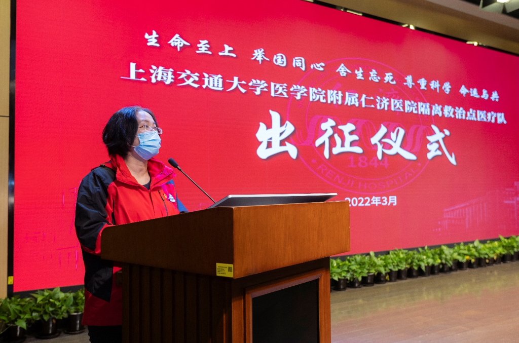 在这支医疗队伍中,一个熟悉的身影引起了大家的注意。正是此前在武汉写下动人抗疫日记的仁济医院呼吸科副主任医师查琼芳。此次出征仪式上,查琼芳作为医生代表发言。