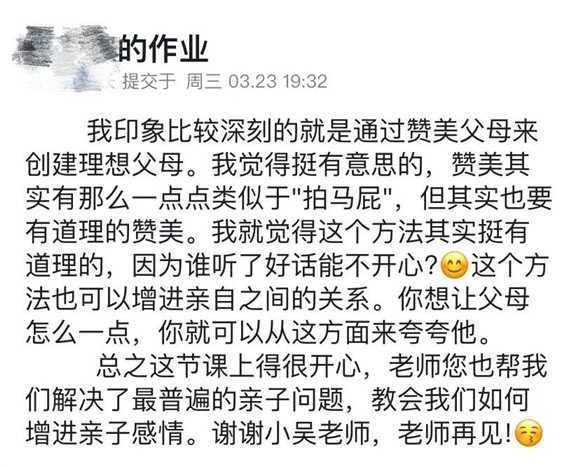 课后,孩子们纷纷交上作业。这些真诚的心声,或许能让爸爸妈妈们看后有所感触吧:我们真的是一个合格的爸爸妈妈吗?