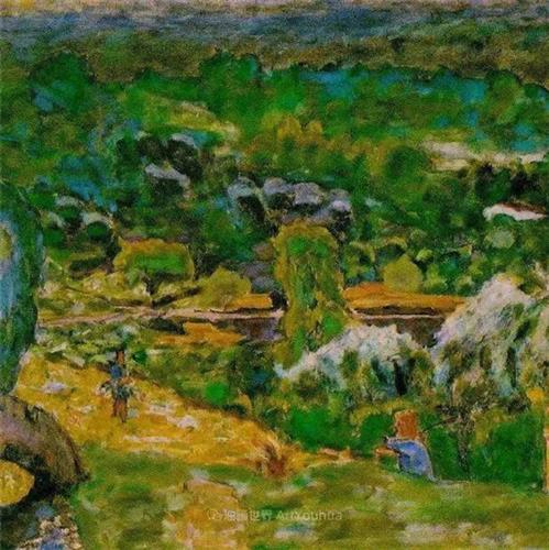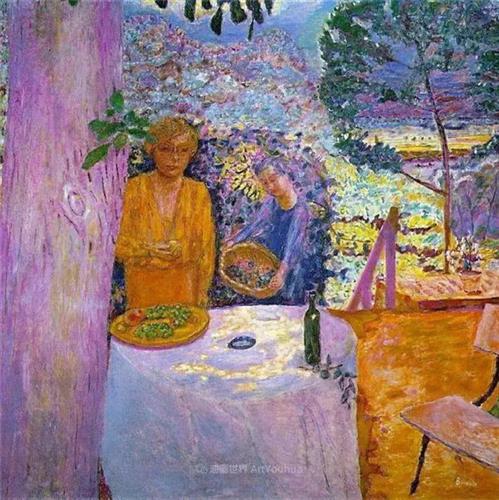 博纳尔以色彩而闻名,被誉为20世纪最伟大的色彩画家之一。然而,他最大的艺术特色在于他不简单地描摹自然,善于通过对空间、光线、色彩、构图等绘画元素的探究,对描绘对象做主观处理,故而他的画达到了一种随心所欲的艺术境界。