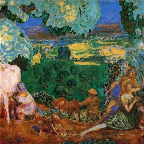 皮埃尔·博纳尔(1867-1947)生于丰特奈-欧罗斯,1947年1月23日卒于勒卡内。早期从事广告和舞台美术设计,曾经是纳比派成员,画风具有东方趣味。1889年定居巴黎,主要创作油画和版画插图,作品多取材室内外景物、静物等。画风又受印象主义和新印象主义影响。代表作有油画《乡间餐厅》。
