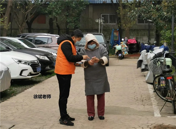 作为一名基层党员教师,体育组的乔华杰老师一看到招募志愿者的信息就积极报名,分发各家快递和核酸检测的秩序维护,乔老师起到了党员的先锋模范作用。同样来自体育组的徐斌老师在完成在线教学之余,做好小区全员核酸志愿者工作,在志愿者工作中,帮助年龄较大的老人居民进行核酸预约,不厌其烦的讲解如何出示二维码。