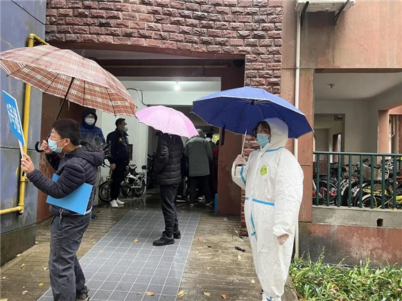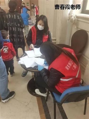 同为党员的英语组李梅老师在做好网上教学工作之余,积极参与抗疫志愿服务,3月13、14日协助社区居委统计防疫信息、开展核酸检测登记码申请和检查、维持现场秩序。英语组的曹春霞老师也加入了临时志愿者工作群,排摸记录小区核酸检测完成人员,负责引导扫码成功人员,有序排队进入检测区域等候;应对突发事件问题,补位解答疑问。