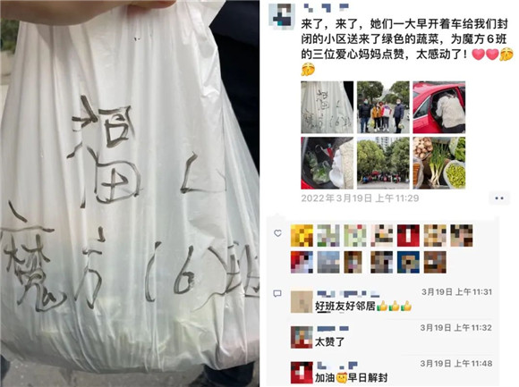 五(6)班更是一个特别温暖有爱的班集体,彼此之间亲如一家。疫情防控期间,班内多位同学居家隔离,生活很不方便。疫情虽无情,人间却有爱。解控期,五(6)班家委会家长就去菜场精心挑选了新鲜的蔬菜,为隔离小区的同学家庭送温暖,他们的身影成了疫情期间那道亮丽的风景线,传递着满满的关心和情谊。