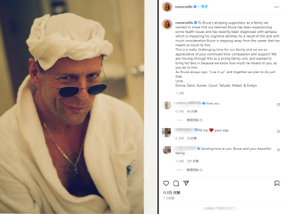 近日,67岁美国演员布鲁斯·威利斯的妻子和女儿在个人社交账号发布声明,表示布鲁斯最近被诊断出失语症,这影响了他的基本行为认知能力。