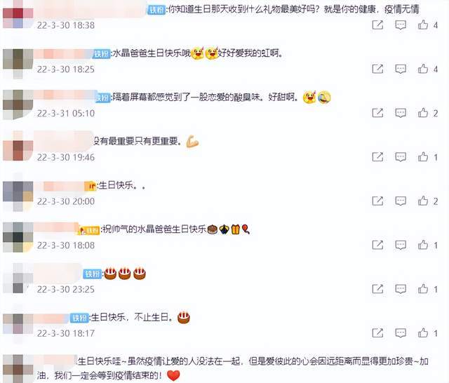 在这条动态下,有网友说:“隔着屏幕都感觉到了一股恋爱的酸臭味。”还有网友说道:“生日那天收到最好的礼物就是健康,也说疫情虽然让相爱的人没法在一起,但爱彼此的心会因远距离而显得更加珍贵。”