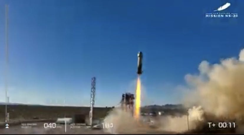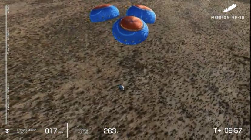 本次飞行也是蓝色起源“新谢泼德”亚轨道飞行器的第20次飞行任务(NS-20)。6名乘客分别是天使投资人马蒂·艾伦(Marty Allen)、夫妻档马克·哈格尔(Marc Hagle)和莎伦·哈格尔(Sharon Hagle)、教师吉姆·凯奇(Jim Kitchen)、商业航天技术公司总裁乔治·尼尔德(George Nield)和加里·莱(Gary Lai)。