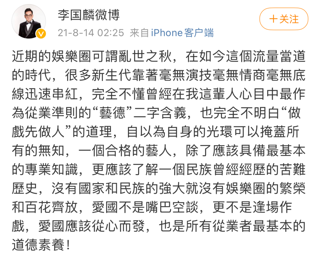 橘了解下来发现李国麟老师其实是一个很正能量,爱国的人,