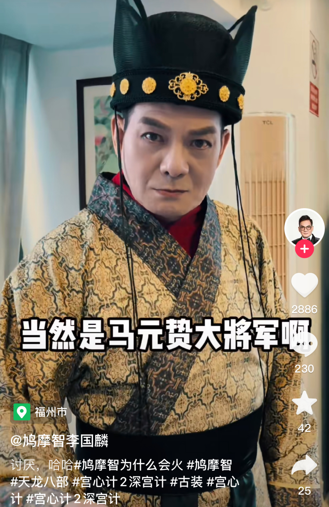 在他的某音视频里也扮上了自己经典的角色造型,