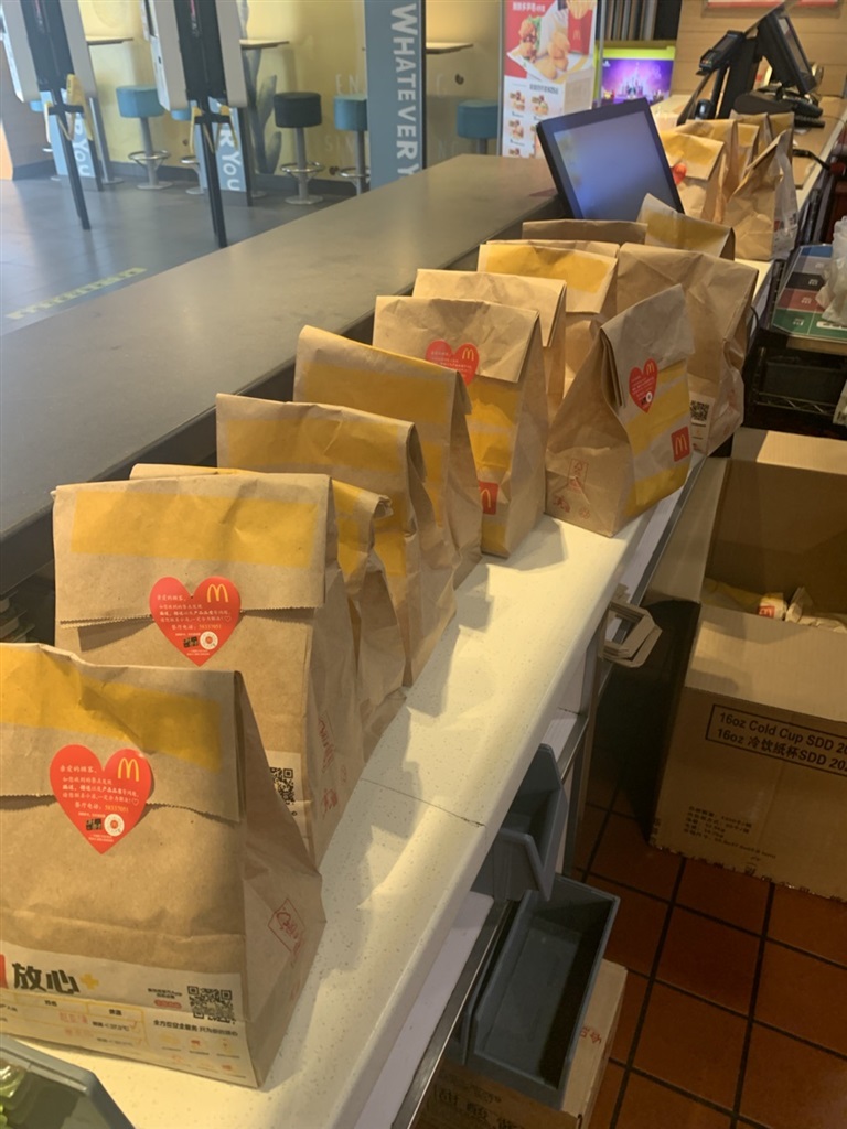 目前,上海麦当劳已有超过百名员工和外送员投入到了“保供餐厅”中。除了这些已经加入的员工,还有不少员工也在主动要求参加。在上海麦当劳内部发起的“保供餐厅”员工招募中,上线一天就有近400名员工和60多名外送员报名参加。