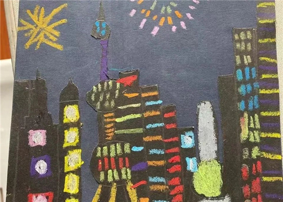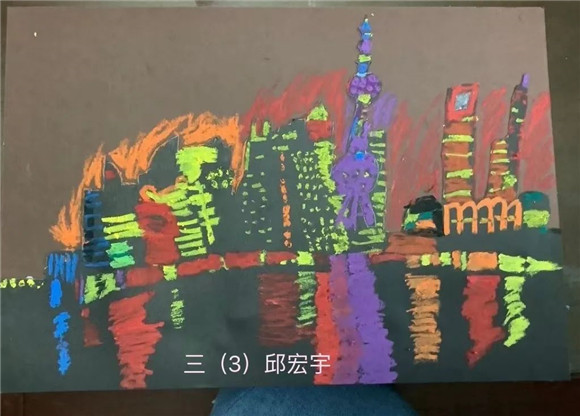 高年级同学也不落后,他们在作品中动脑筋,进行了有创意的美术拓展作业。
