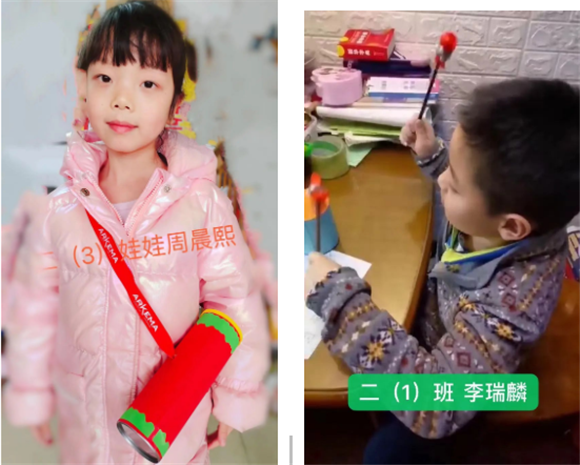 “一学”:学习同学的自觉管理精神,学习他们作品中动脑筋、有创意的地方。“空中课堂”准备阶段,教师就组织学生做好准备,并展示上节课的学生作品,让学生在欣赏、点赞中,相互学习鼓励。