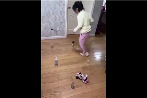快来看看我们的小朋友是怎么在家玩“绕过障碍跑的”,看她多灵活,快跑、转弯不在话下,奥运小选手非他莫属了。