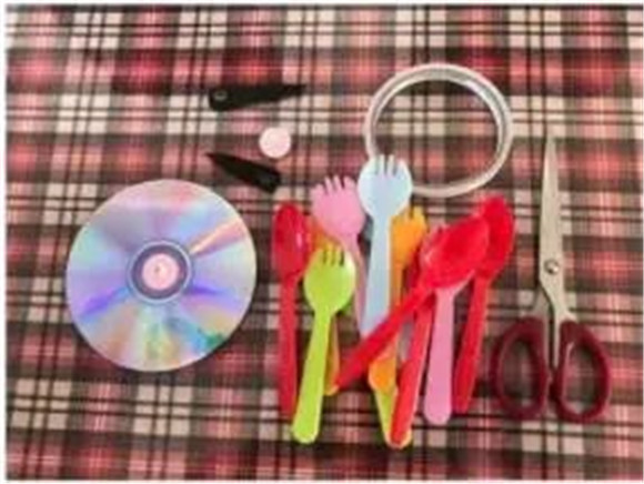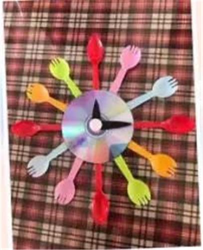瞧!一次性餐具和废弃光盘摇身一变成了一个时钟。