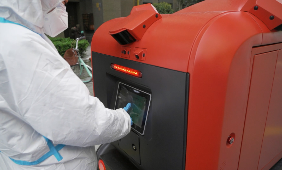 “请输入取货验证码……”陈慧来到车头的显示屏前,按照提示,输入取件码后,车舱门自动弹开,她便直接拿出自己楼栋居民的外卖、快递,上门分发。