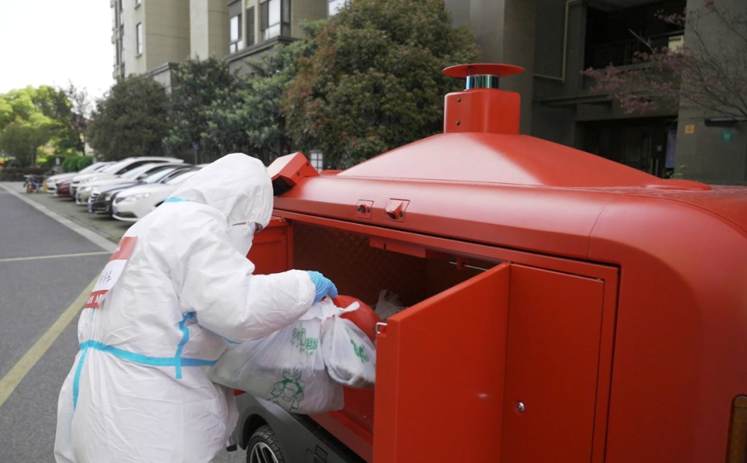 “31单元、32单元、36单元……都有了。”4月2日中午,在南翔镇溪岸澜庭小区门前,2名小区工作人员正将居民网购的外卖、快递依次放入智能快递车舱。关上门后,小车自动起步行驶。来到事先预设的指定楼栋后,小车便自己停下来。此时,31单元楼栋志愿者陈慧的手机收到一条来自京东并附有取货码的提示短信。