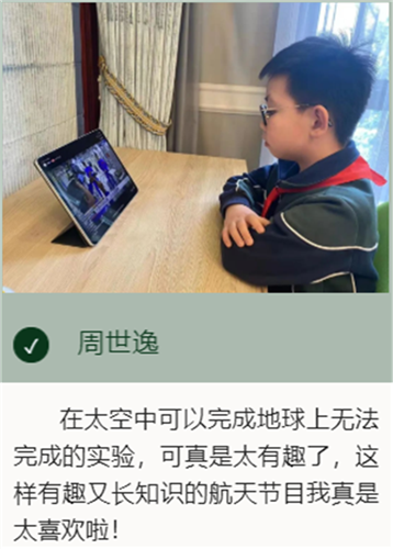 [浦东]张江高科实验小学:精彩课堂 相约“天宫”-学生“居家线上学习”精彩生活分享