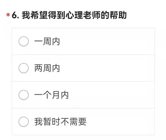网课第一周,学校心理室就设计了针对我校学生的“居家心理状况自查问卷”,并首先利用心理辅导活动课,邀请全体高一年级的学生填写了相关问卷。在问卷的最后,设置了问题: