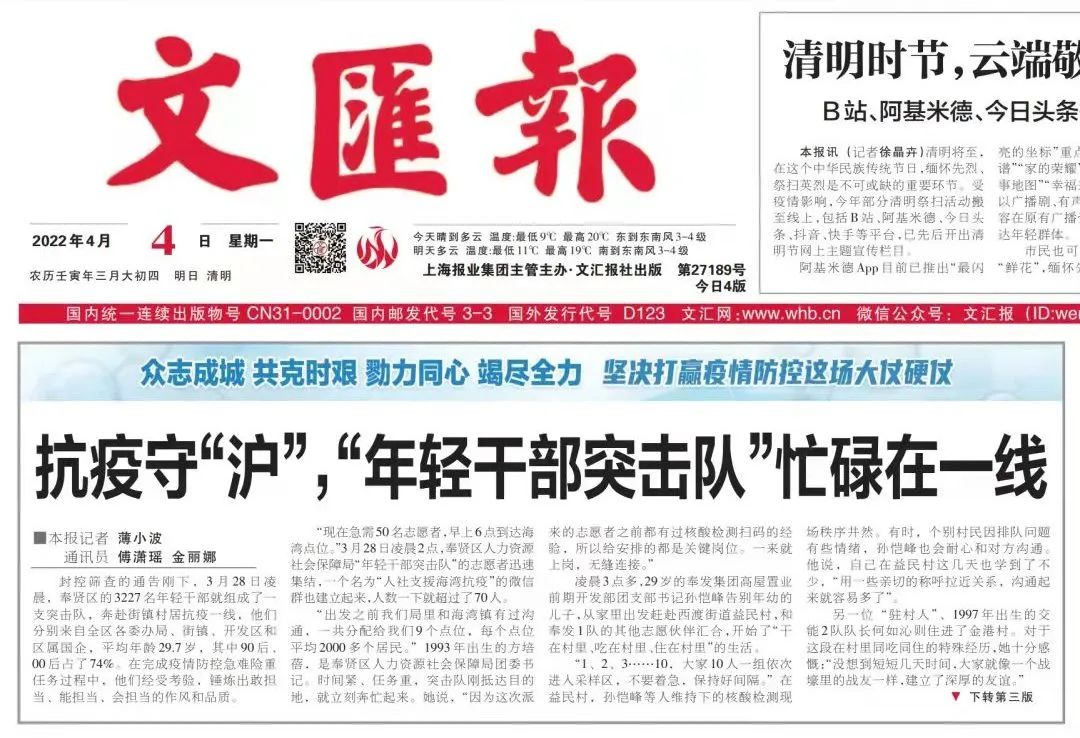 3月28日凌晨,奉贤区吹响了年轻干部支援基层抗疫一线的集结号。