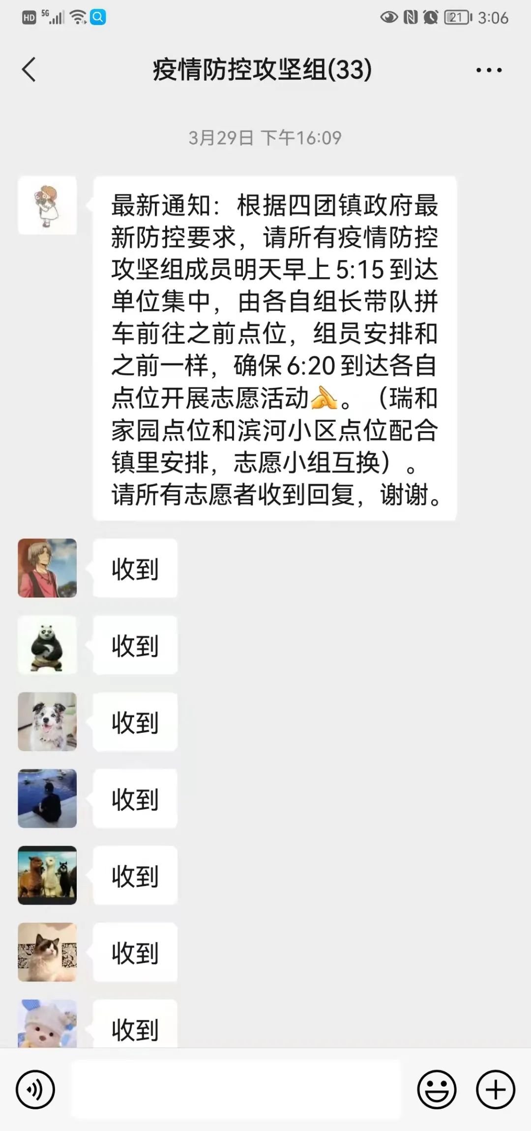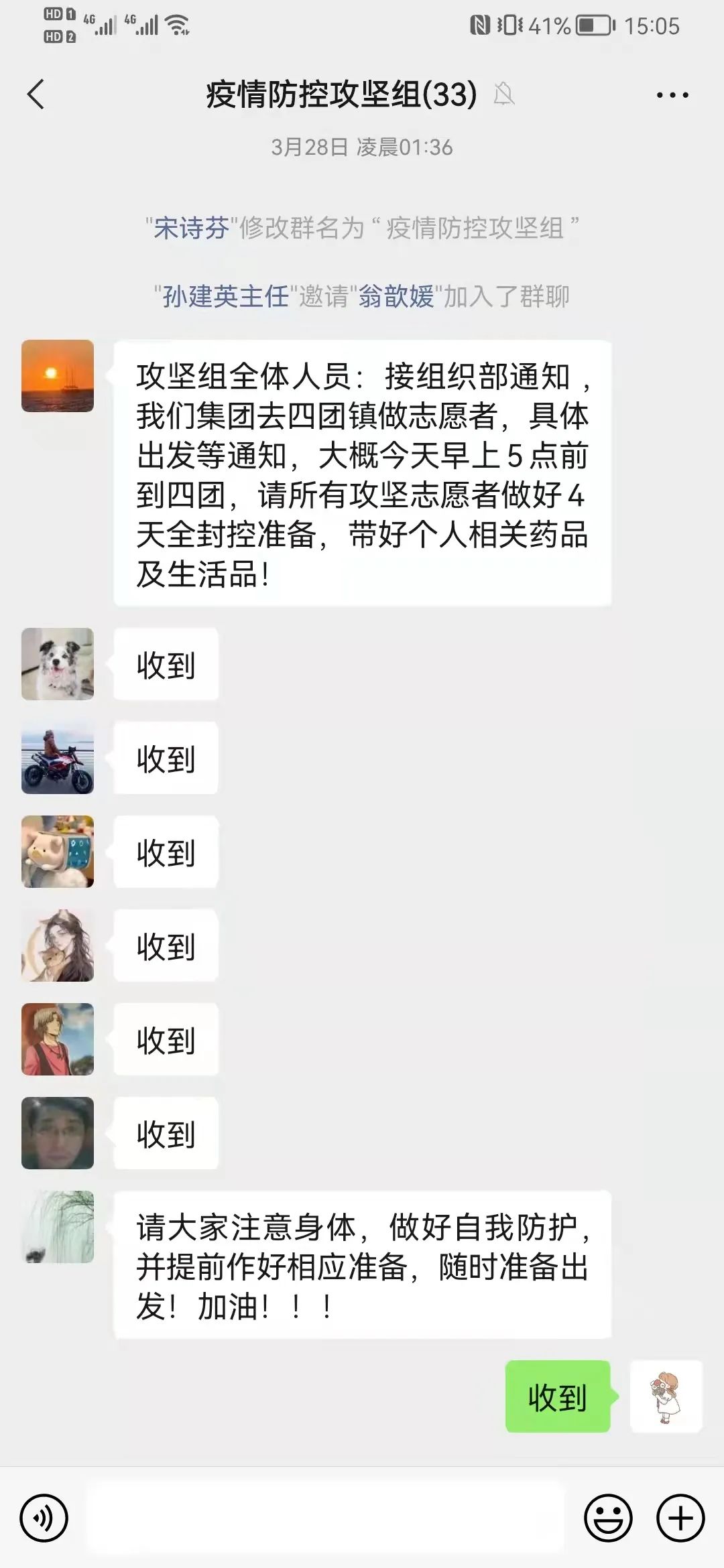 凌晨1点,奉投集团建立起“疫情防控攻坚组”微信群,迅速集结青年志愿者,包含党员、预备党员、入党积极分子和青年志愿者,共计29人。