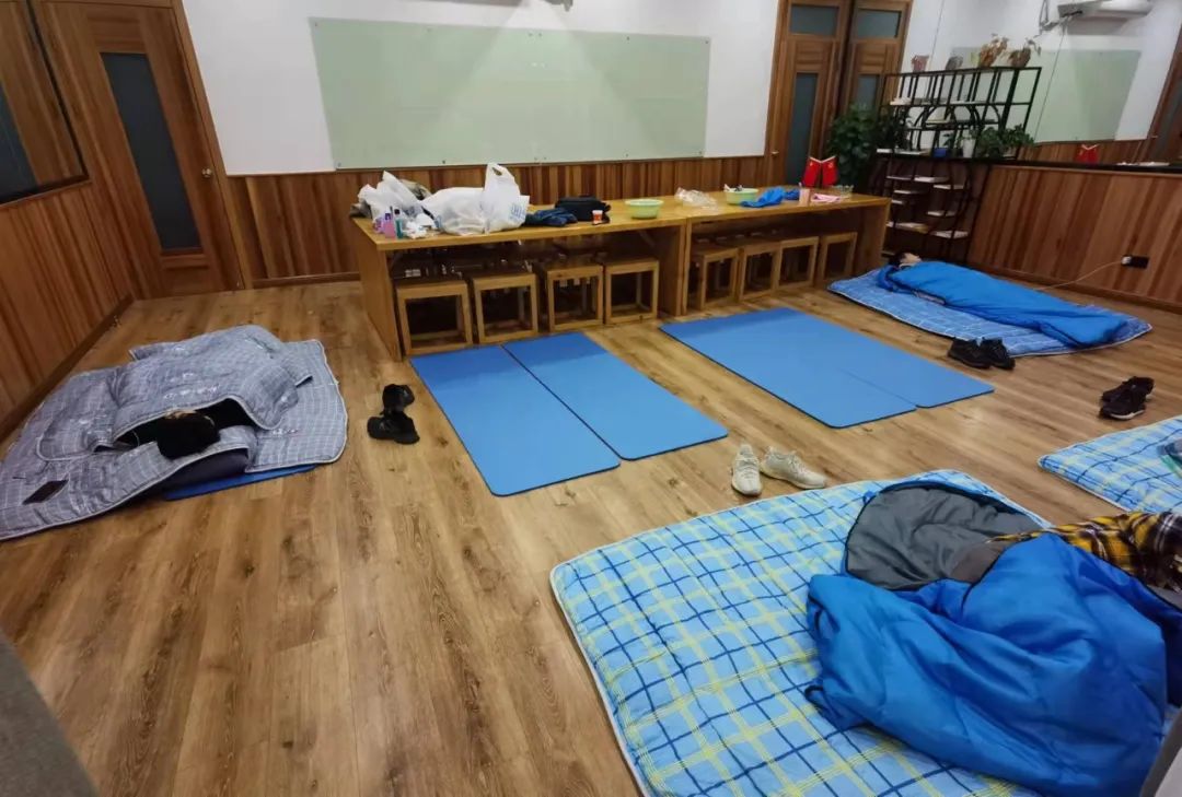 因为多数点位不具备居住条件,四团镇政府也积极为奉投青年突击队员们创造了居住条件,突击队员们在结束了一天高强度的工作后,席地而睡,这一刻,他们的身体是疲惫的,精神却是满足的。