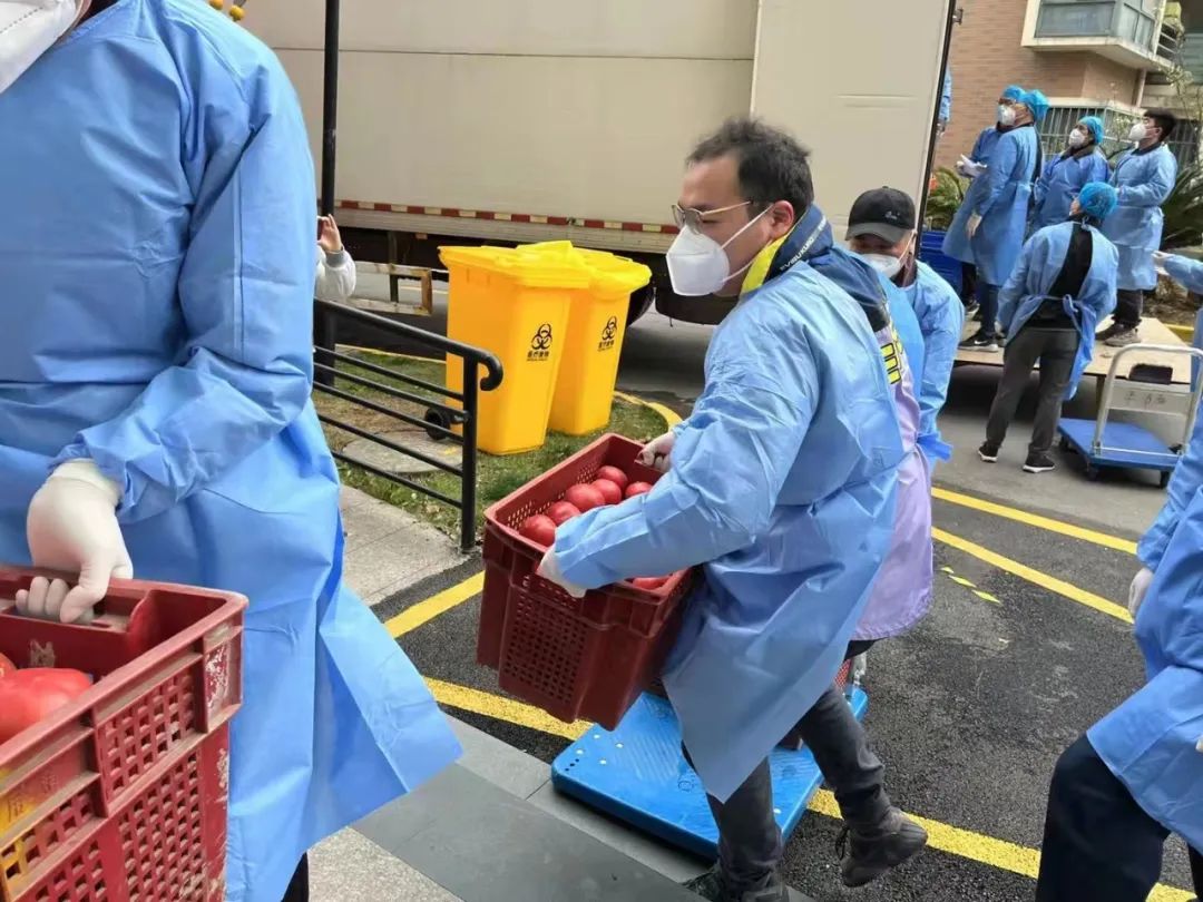 由于部分点位出现阳性病人,突击队员有疑似接触的情况,仅有一小组队员开展了次日的发放物资志愿服务。