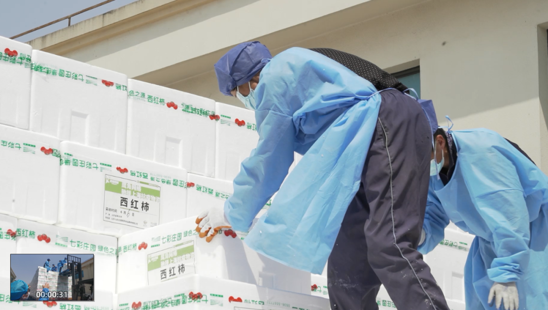 4月6日下午,第一批捐赠物资装车完成后,从山东寿光出发,4月7日上午抵达嘉定。