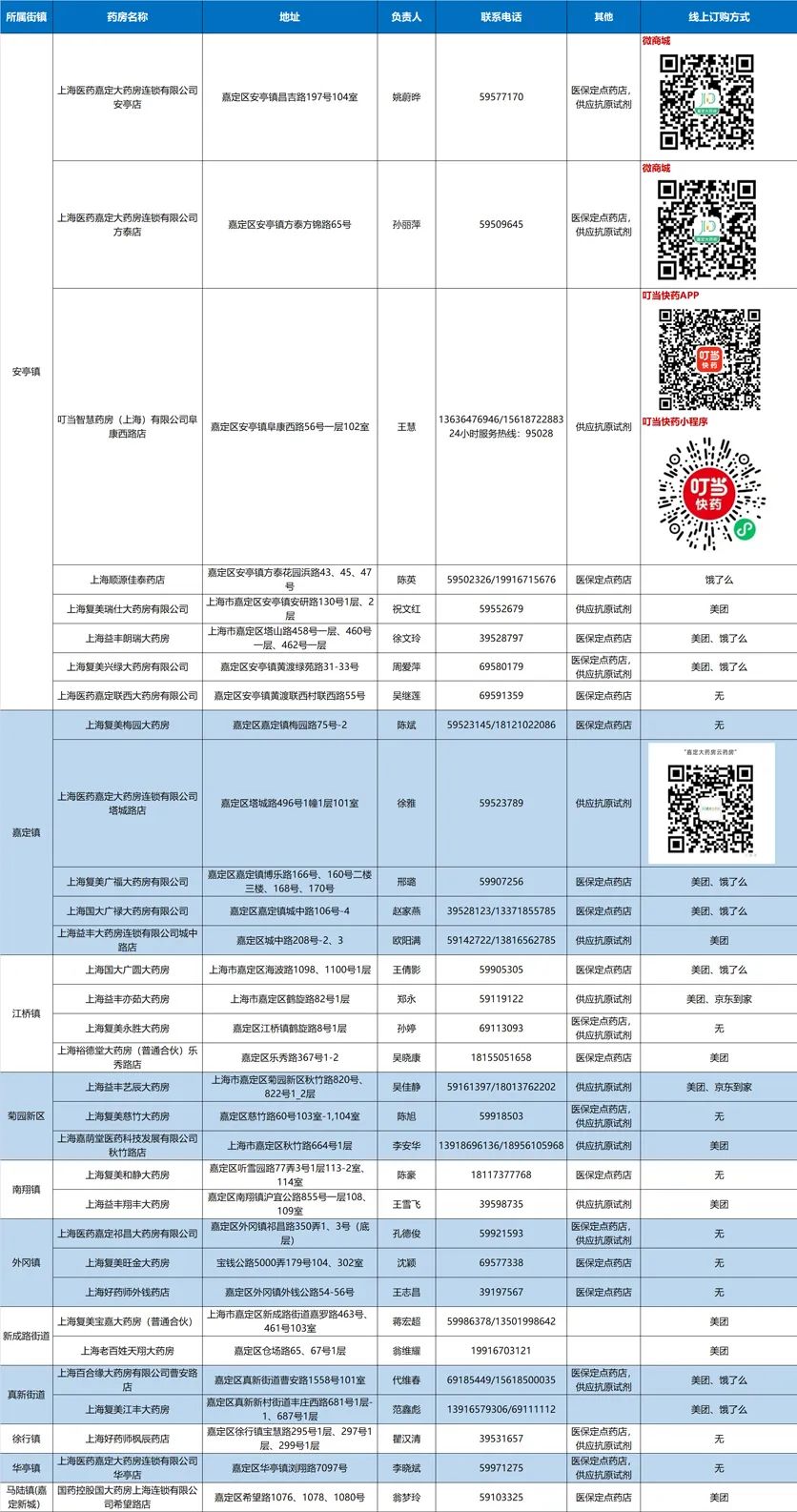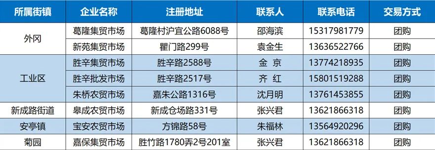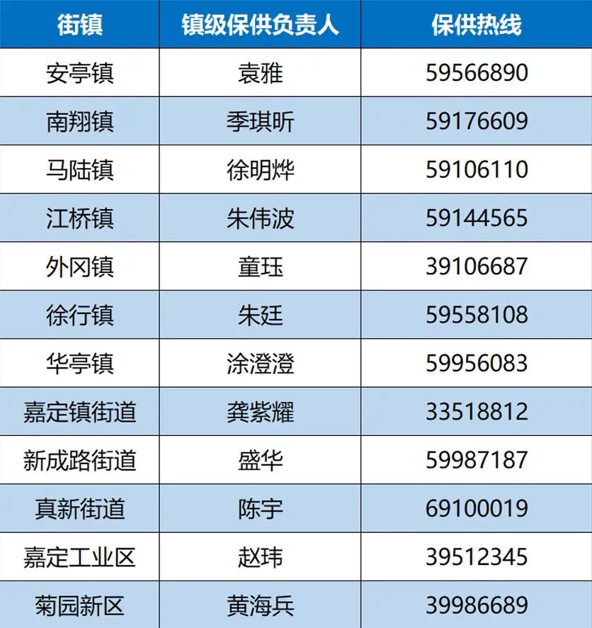 嘉定各街镇保供负责人