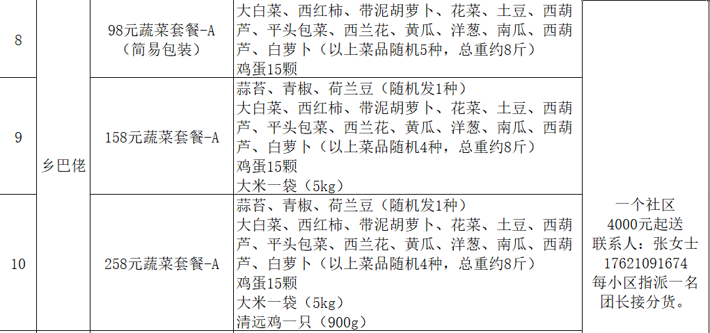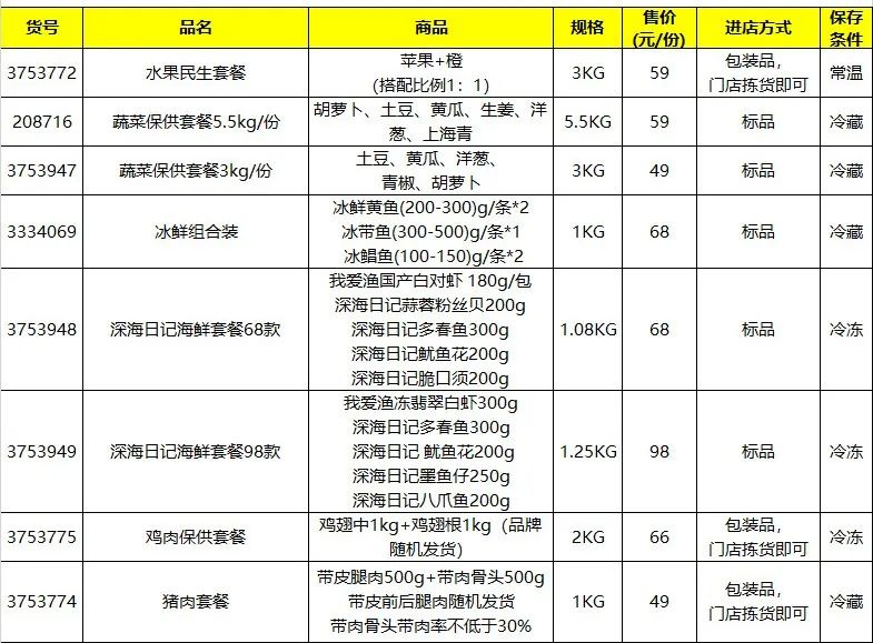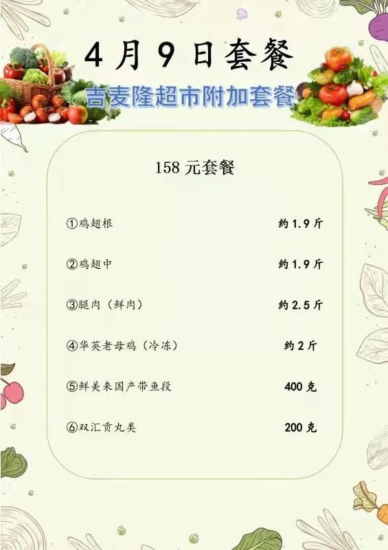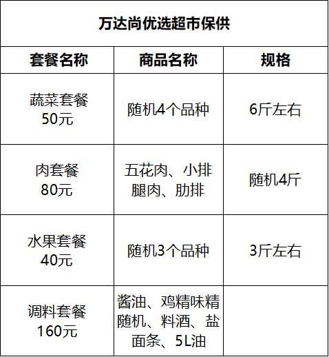 除此之外,4月9日起,新区还联合辖区吉麦隆超市推出了相关套餐,有需求的居民也可以联系所在村社区订购。