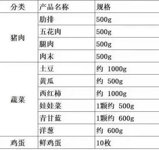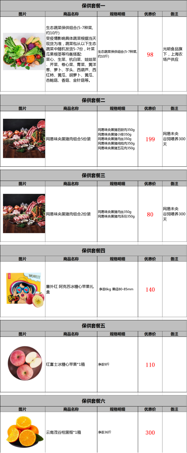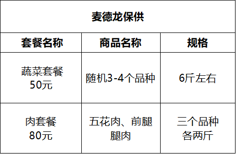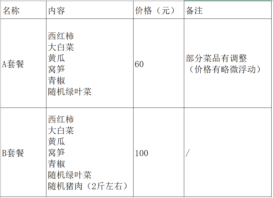 供应品种:保供套餐(蔬菜、猪肉或水果)